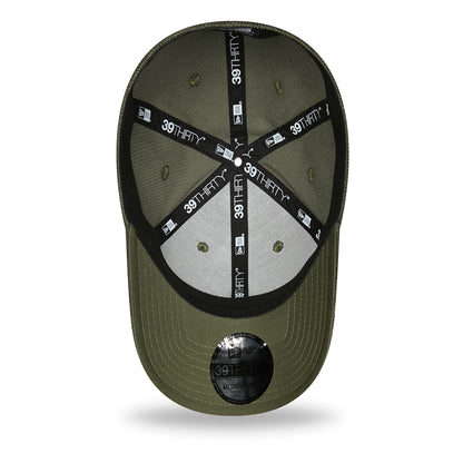 The 39THIRTY L.A. Dodgers MLB Corduroy Baseball Cap from New Era in olive features the team's logo embroidered on the front. The New Era flag is embroidered on the side and the MLB logo is embroidered at the back. There is a sweatband that stretches for a great fit.