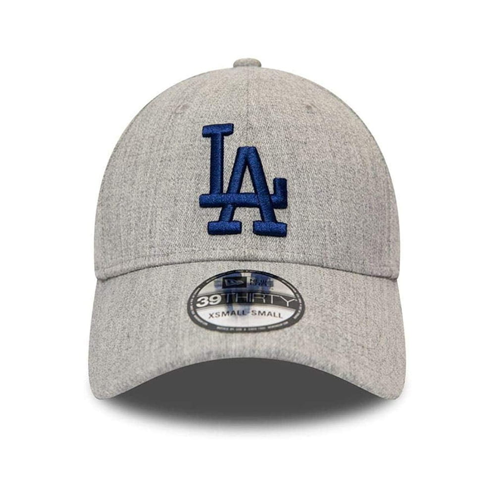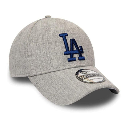New Era 39THIRTY L.A. Dodgers MLB Heather Baseball Cap in grey. The hat features the team logo embroidered on the front of the hat and the New Era flag on the side. It comes with a pre-curved brim and a stretch to fit sweatband for a great fit.