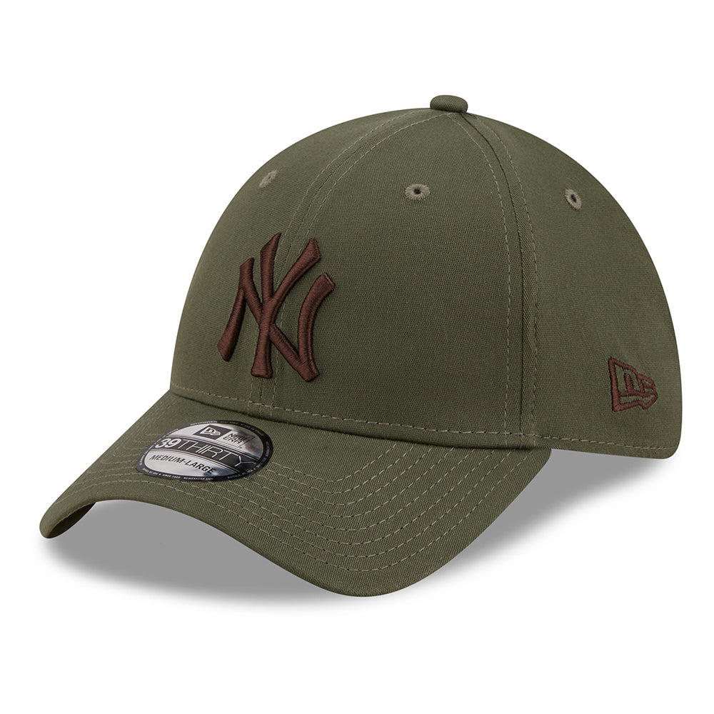 The MLB League Essential New York Yankees 39THIRTY from New Era in olive-brown features the team's logo embroidered on the structured front. The New Era flag is embroidered on the left side and the MLB logo at the back. There is a sweatband that stretches for a great fit.