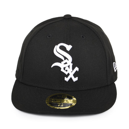 This is the 59FIFTY Chicago White Sox Low Profile MLB On Field AC Perf Baseball Cap from New Era. The cap has a lower crown than the traditional 59FIFTY so it hugs the head. This cap features the Chicago White Sox logo embroidered on the front of a black cap. The New Era logo is embroidered on the side and the MLB logo is embroidered at the back.