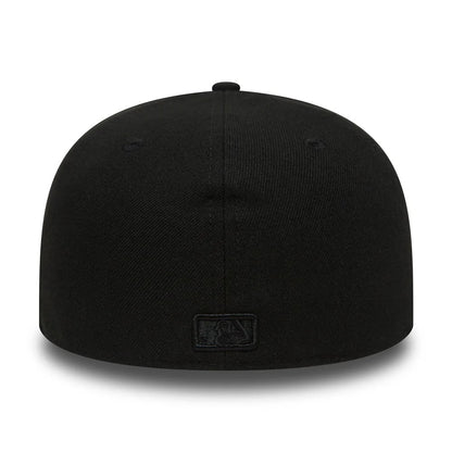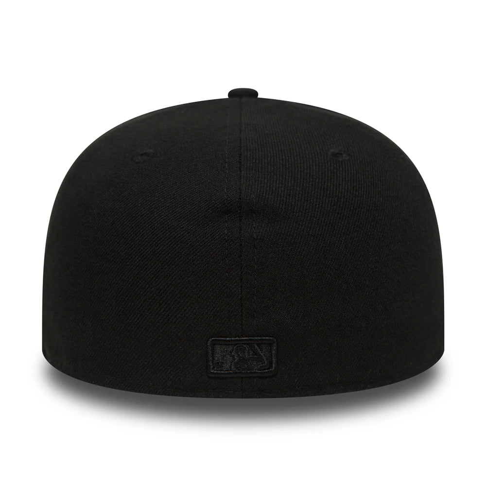 This classic from New Era is a genuine 59FIFTY cap with the New York Yankees logo in black on a black cap. The cap also features the New Era logo embroidered on the side and the MLB logo embroidered at the back.