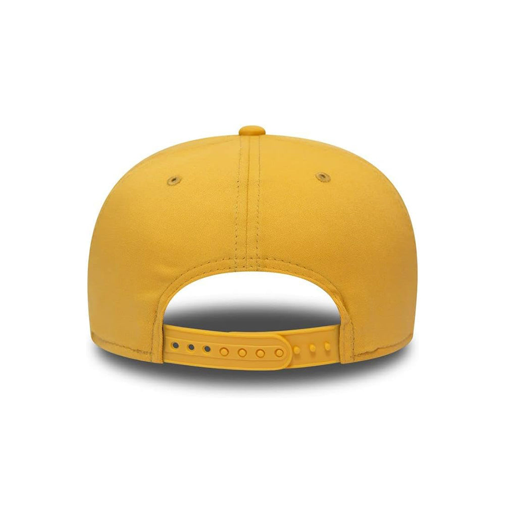 Here is the New Era 9FIFTY L.A. Lakers NBA League Essential Stretch Snap Snapback Cap in yellow. This 9FIFTY stretch snapback features the team's logo on the front and the New Era flag embroidered on the side. There is an adjustable snap at the back of the cap to ensure a great fit. There is also a bit of stretch in the sweatband to give that extra comfort.
