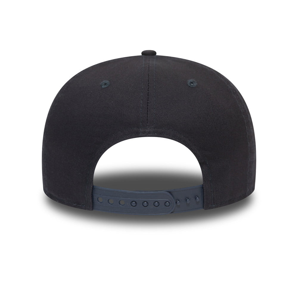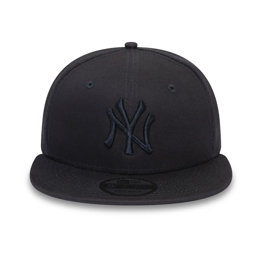 New Era 9FIFTY New York Yankees MLB Tonal League Essential Baseball Cap in navy blue. The cap features the Yankees logo embroidered on the front in the same colour as the hat. The New Era logo is embroidered on the side of the cap. There is an adjustable snap at the back to get a great fit. The hat is made of 100% cotton. As its a 9FIFTY, the cap comes with a flat brim.