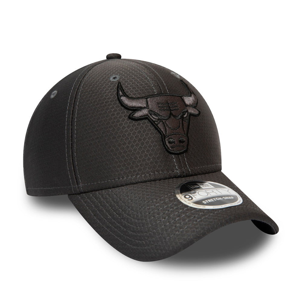 This is the New Era 9FORTY Chicago Bulls Snapback Cap NBA Tonal in grey. The cap features the team's logo embroidered on the front. The New Era flag is embroidered on the side. There is an adjustable snap at the back and an elastic sweatband so this will fit most sizes comfortably.