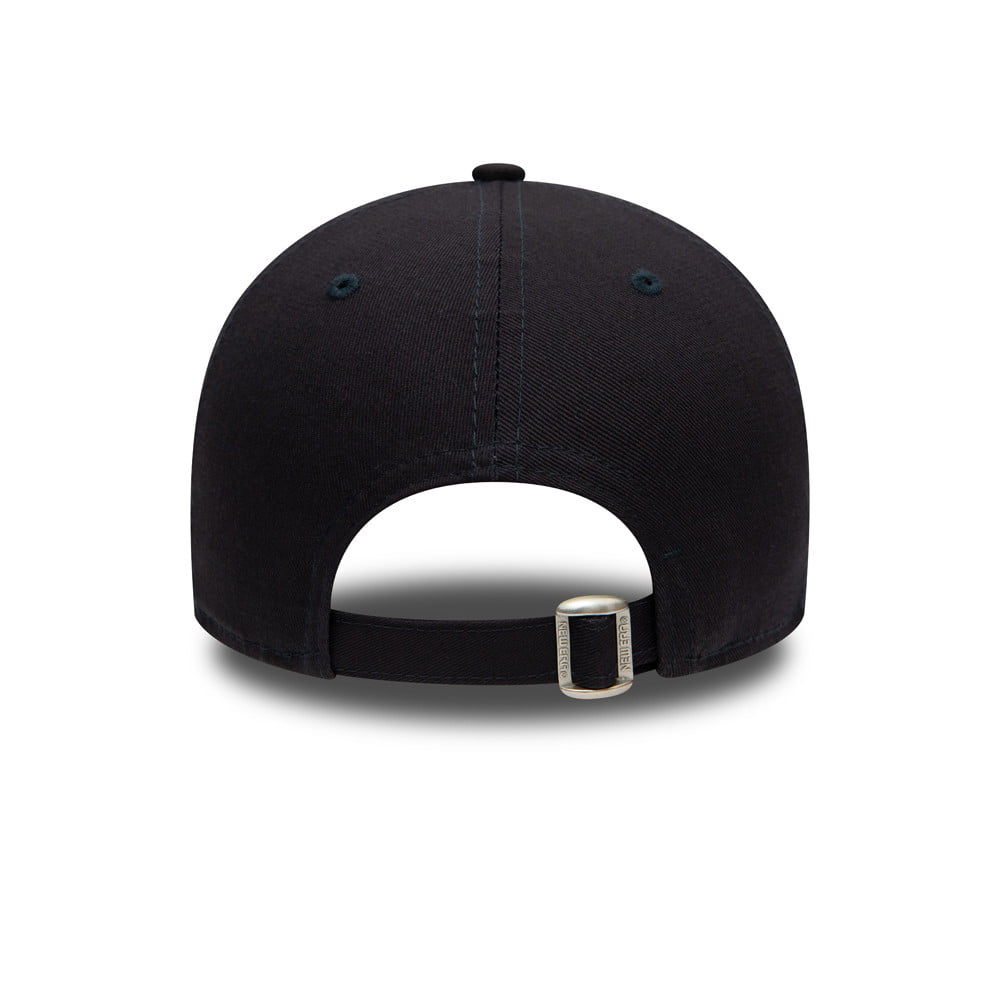 This is the New Era 9FORTY Cotton Colour Essential Baseball Cap in navy blue. This 100% cotton cap features a New Era patch sewn to the front of the cap. There is a New Era flag embroidered on the side of the cap. The brim is pre-curved and there is an adjustable strap at the back of the cap.
