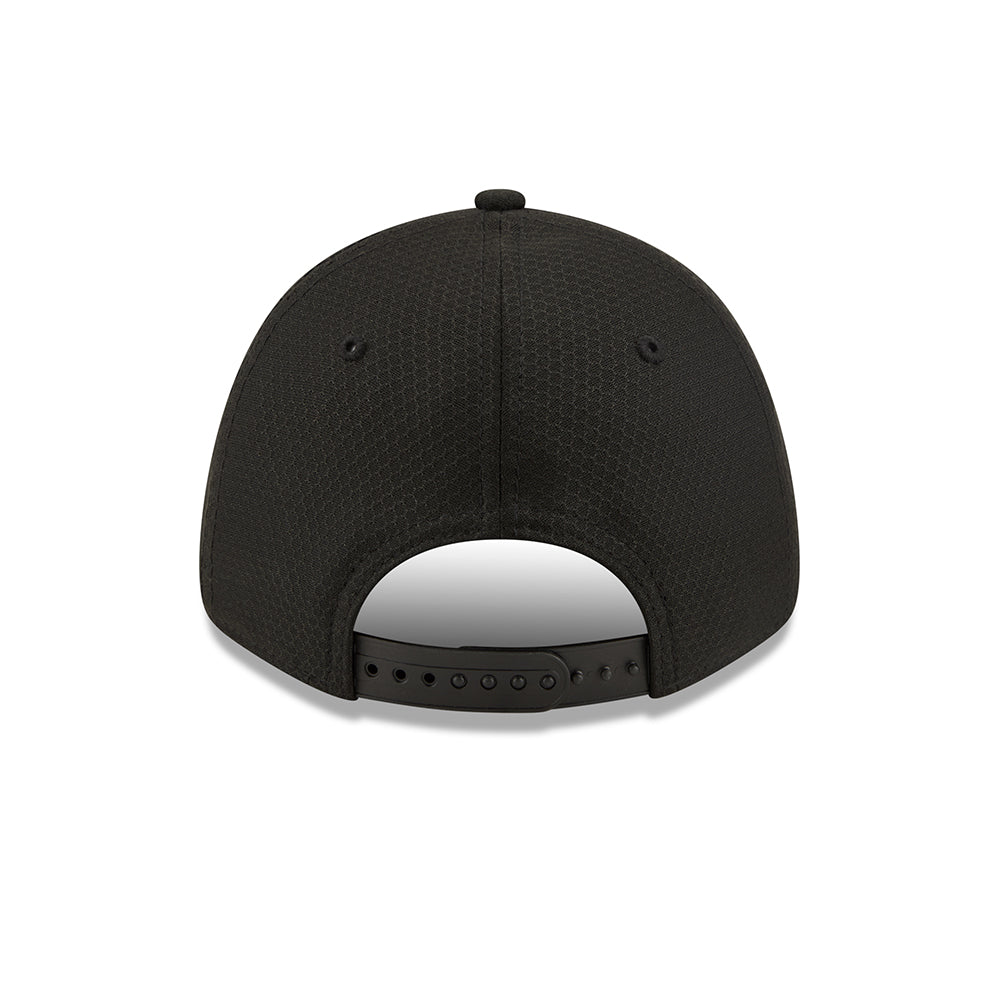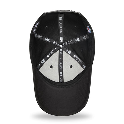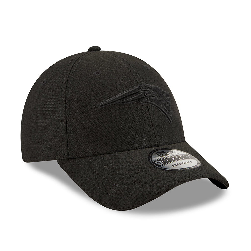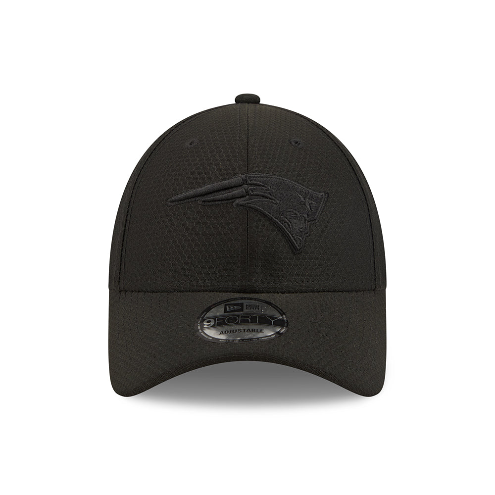 The New Era 9FORTY New England Patriots NFL Mono Team Colour Baseball Cap in black features the team's logo on the structured front panels and embroidered New Era flag on the left side. The six panel construction features breathable eyelets with a curved visor. An adjustable snap at the back ensures a comfortable fit.