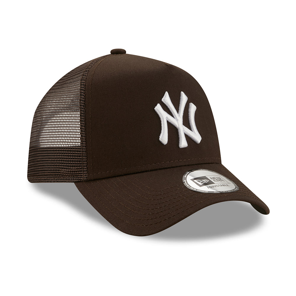 New Era 9FORTY New York Yankees A-Frame Trucker Cap - MLB League Essential - Dark Brown-White