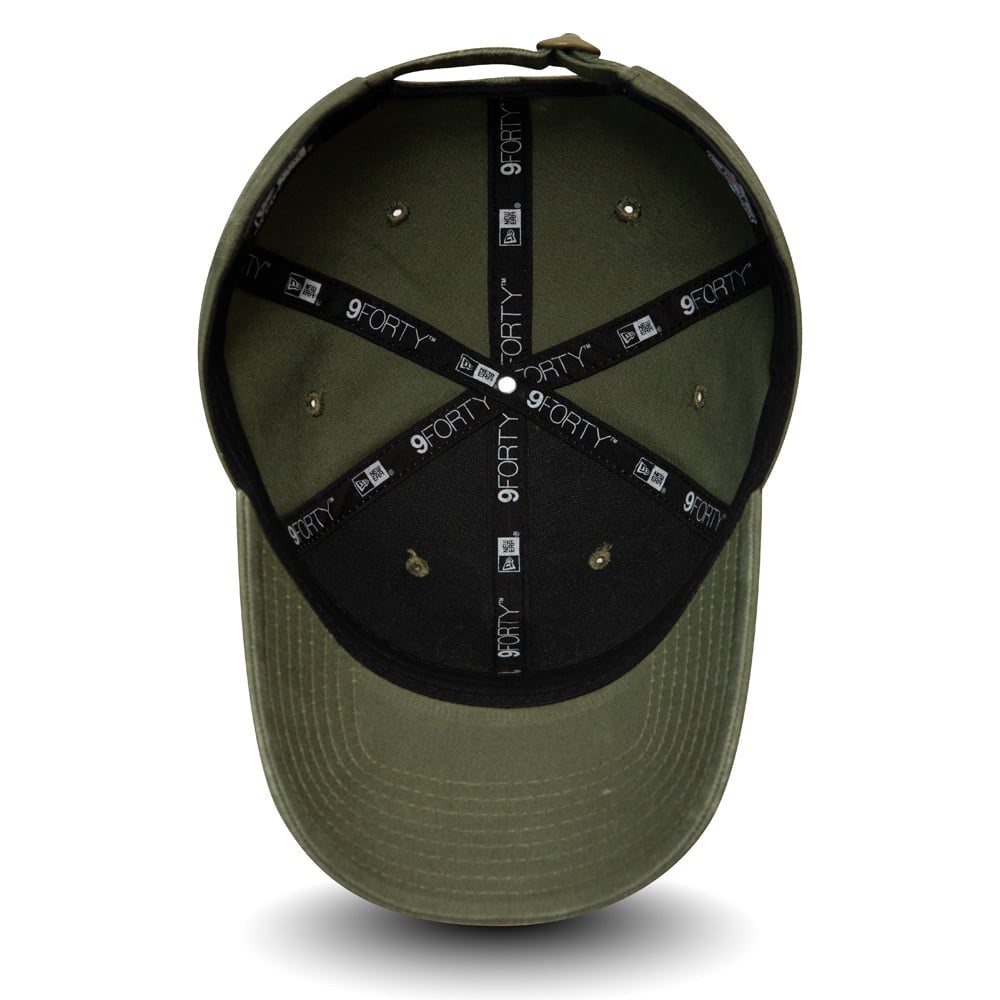 The New Era 9FORTY Reading Fightin Phils Baseball Cap - Minor League in Olive is a structured, adjustable cap with an embroidered logo of the team on the front. The New Era flag is embroidered on the left side of the cap. The six panel cap features breathable eyelets with a curved visor and button at top. The open back has an adjustable cotton strap with metal buckle so the hat fits many sizes. The cap is 100% cotton.