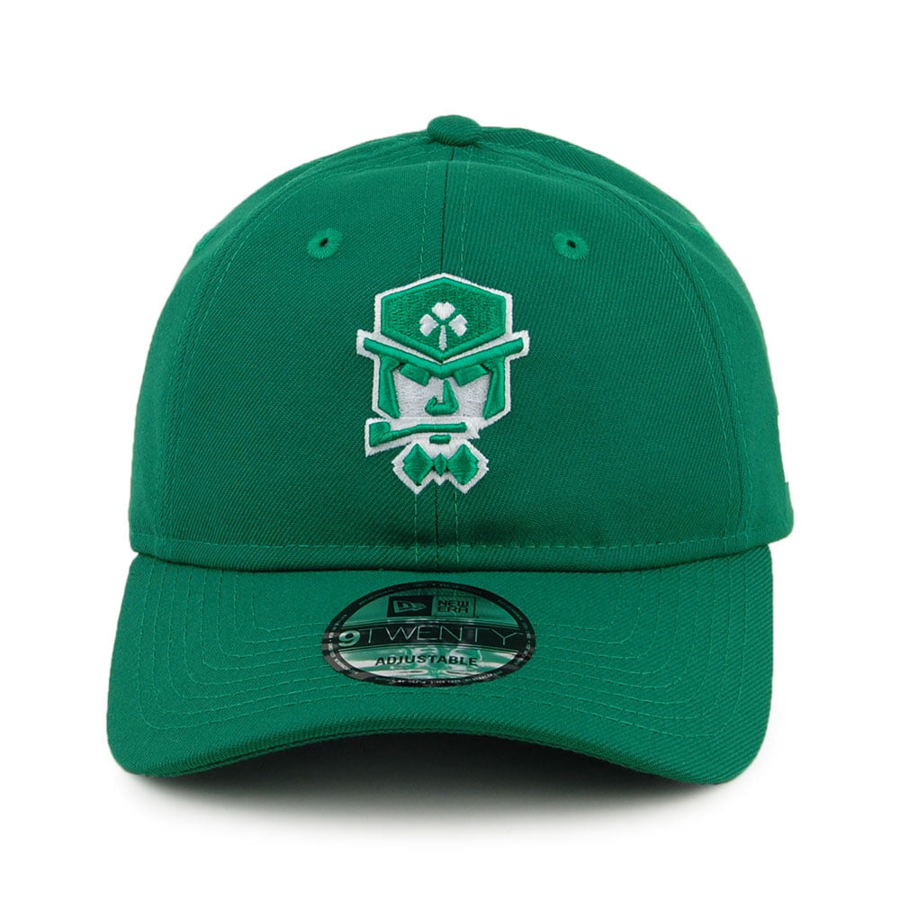 This is the 9TWENTY Boston Celtics Baseball Cap from the NBA 2K Series in green. The team logo is featured on the front and the New Era® flag is embroidered on the left side of the cap. There is an official NBA 2K logo embroidered at the back. The six panel cap features breathable eyelets with a curved visor and button at top. The open back has an adjustable strap with metal buckle so the hat fits many sizes.