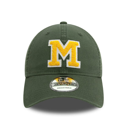 The New Era 9TWENTY MLB Varsity Cooperstown Milwaukee Brewers Baseball Cap in moss features the team's logo embroidered on the front and the New Era flag embroidered on the left side. There is an adjustable strap at the back of the cap to ensure a great fit. As the cap is a 9TWENTY, it has a soft, unstructured crown.