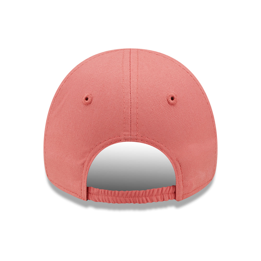 This adorable New Era Baby 9FORTY MLB League Essential New York Yankees Baseball Cap in light pink-pink features the team logo embroidered on the slightly structured front panels and the New Era flag embroidered on the left. The crown in cotton features eyelets for breathability and an elasticized strap at the back allows a comfortable fit.