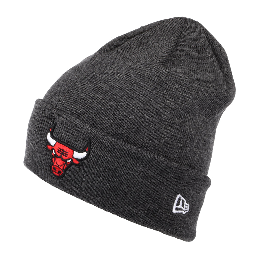 The New Era Chicago Bulls NBA Heather Essential Cuff Beanie Hat in graphite is made of a soft acrylic yarn and features the team logo embroidered on the front. The New Era flag is embroidered on the side. This is a great winter style as it is dual layered.