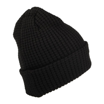 Here is the New Era Chicago Bulls NBA Team Waffle Knit Beanie Hat in black. This winter beanie features the teams logo on a patch sewn to the front. There is a New Era flag embroidered on the side of the hat and it is double layered for extra warmth. A great hat for every fan.
