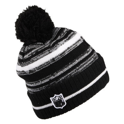 Here is the New Era Green Bay Packers NFL Sport Knit Bobble Hat in black-white. The striped winter beanie features the teams logo on a patch sewn to the front. There is a New Era flag embroidered on the side of the hat. There is a NFL patch sewn to the back of the hat. The pom on the top of the hat can be cut off if you are after a normal beanie, but please note, it can't be reattached. A great hat for every fan.