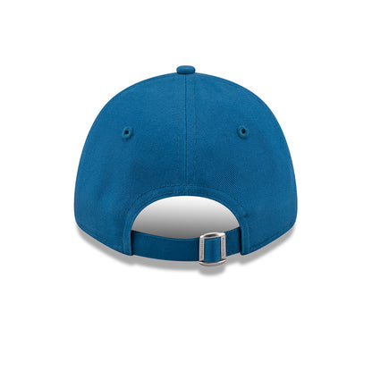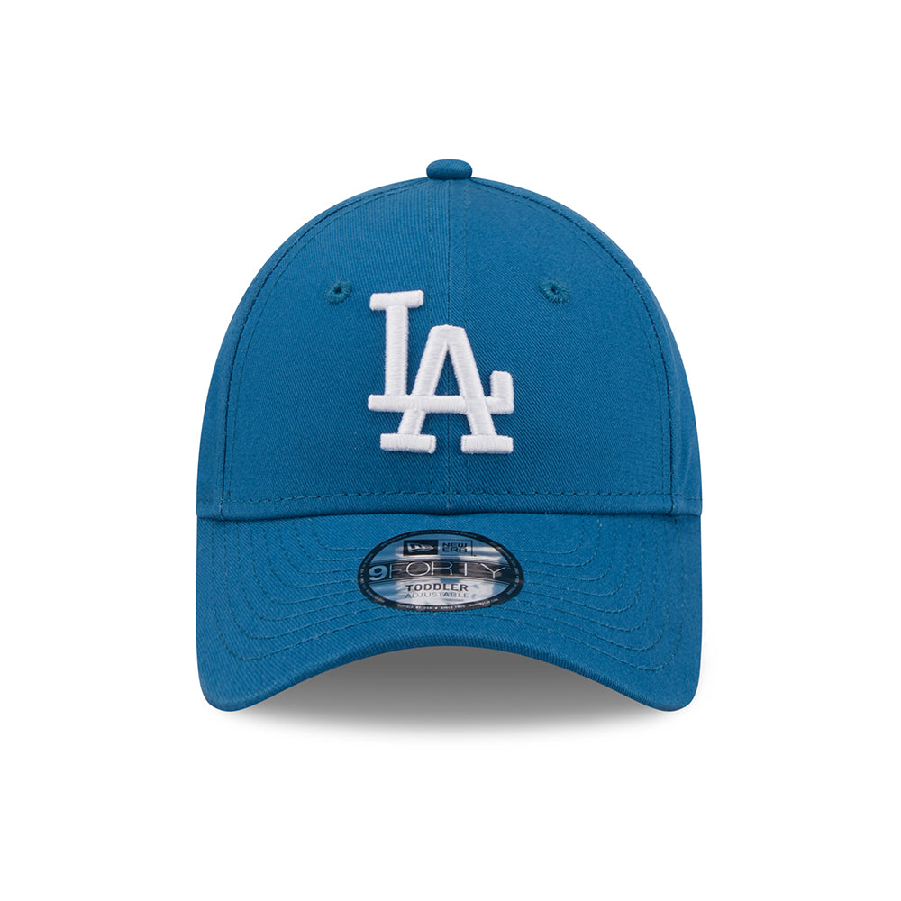The New Era Kids 9FORTY L.A. Dodgers MLB League Essential Baseball Cap in teal-white features the team logo embroidered on the structured front of the cotton cap. The New Era logo is embroidered on the side and there is an adjustable strap at the back that should allow this hat to fit your young one's head.