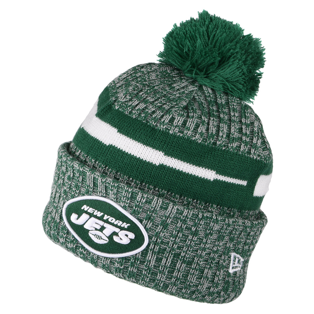 New Era New York Jets Bobble Hat - NFL Sideline Sport Knit - Green-White