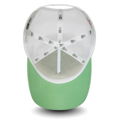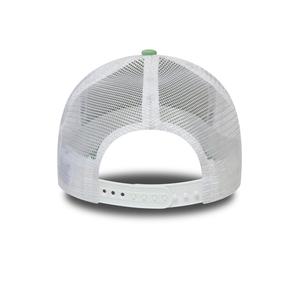 This is the New Era New York Yankees MLB League Essential Trucker Cap in mint. The cap features a cotton front with the team logo embroidered in the middle. The New Era flag is embroidered on the side. There is an adjustable snap at the back of the hat for a great fit.