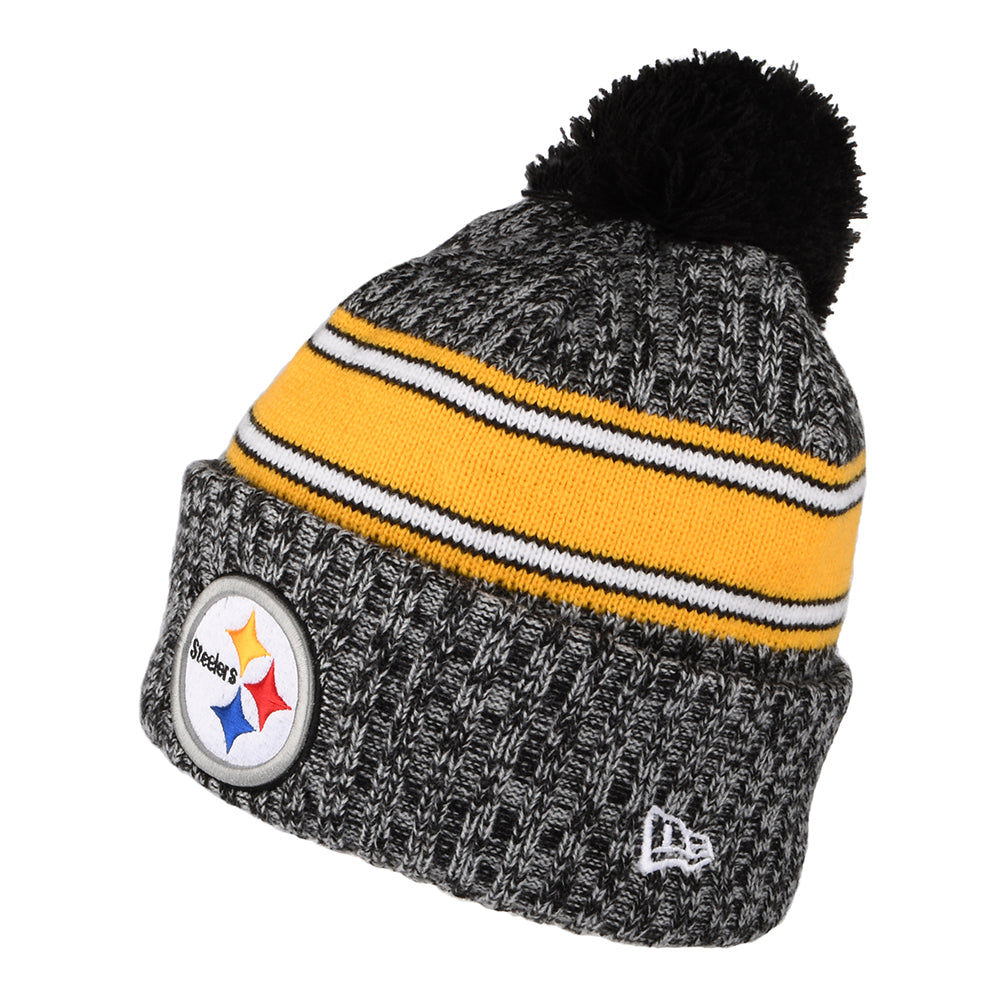 New Era Pittsburgh Steelers Bobble Hat - NFL Sideline Sport Knit - Black-Yellow