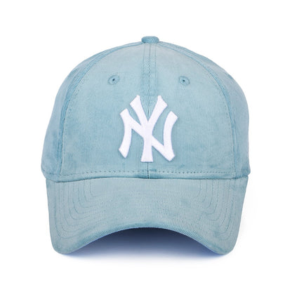 Here is the New Era Womens 9FORTY Corduroy Baseball Cap in sky blue. The cap features the Yankees logo embroidered on a corduroy cap. The New Era flag is embroidered on the side of the cap. As this is a 9FORTY, the cap comes with a pre-curved brim and an adjustable strap at the back of the cap for a comfortable fit.