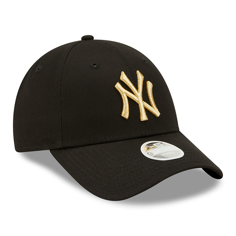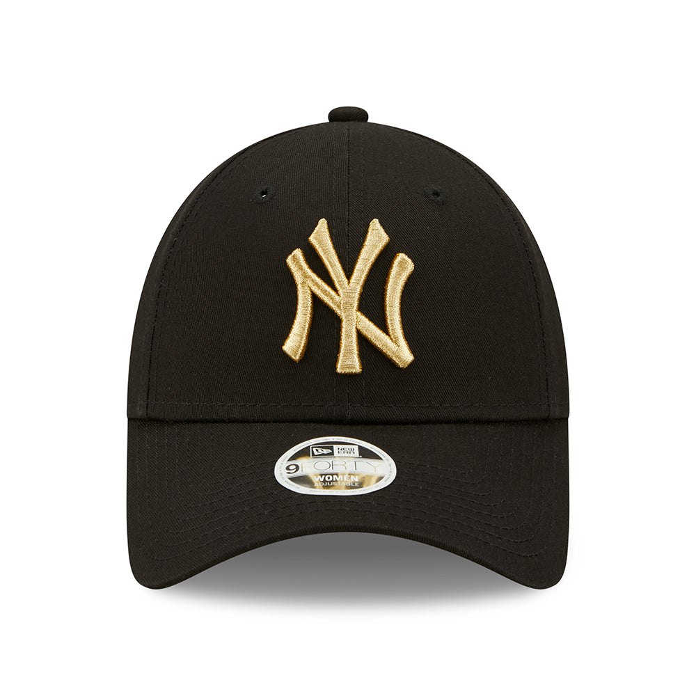 New Era Womens 9FORTY New York Yankees Baseball Cap - MLB Metallic Logo - Black-Gold