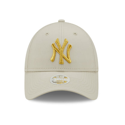 New Era Womens 9FORTY New York Yankees Baseball Cap - MLB Metallic Logo - Stone-Gold