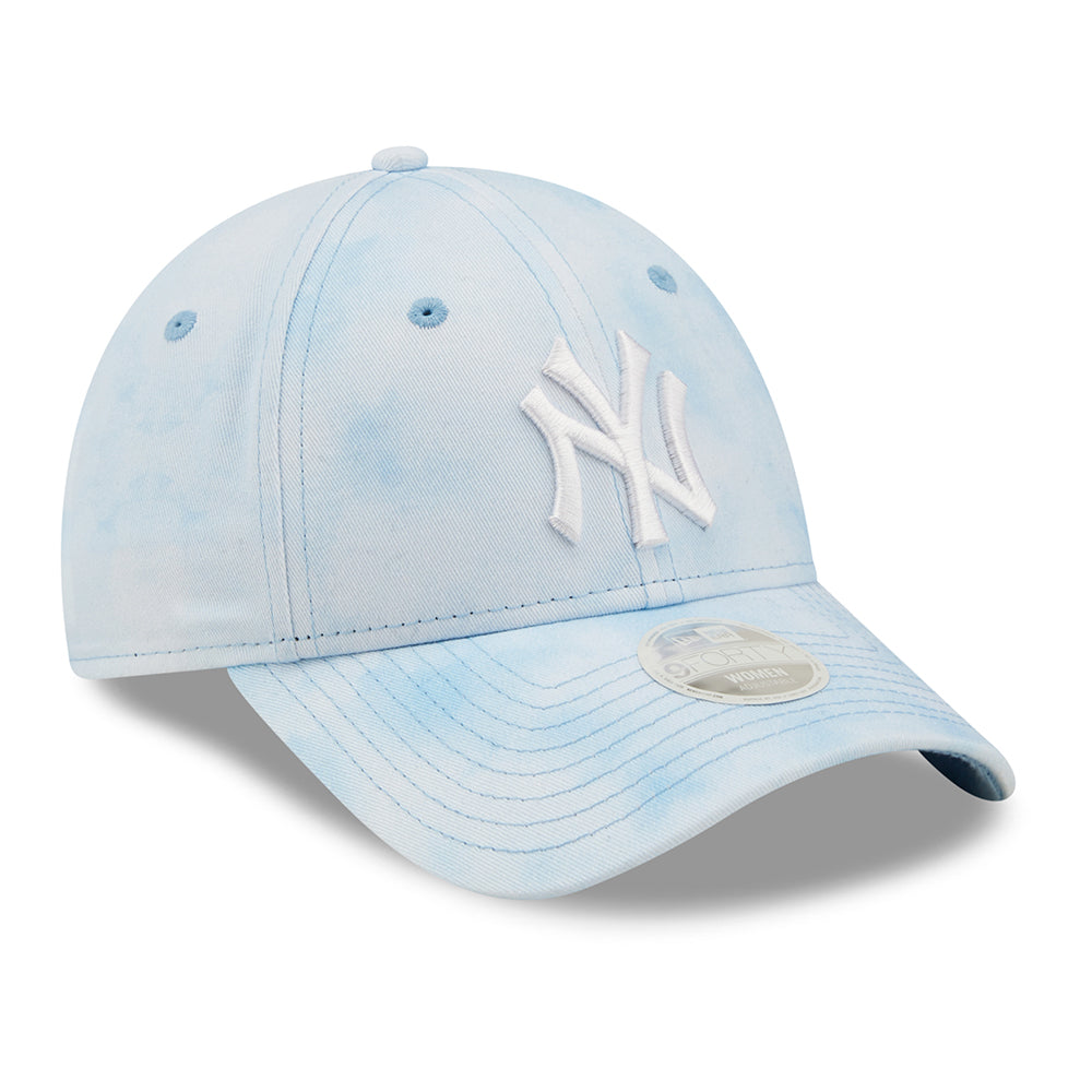 New Era Womens 9FORTY New York Yankees Baseball Cap - MLB Pastel Tie Dye - Sky Blue-White