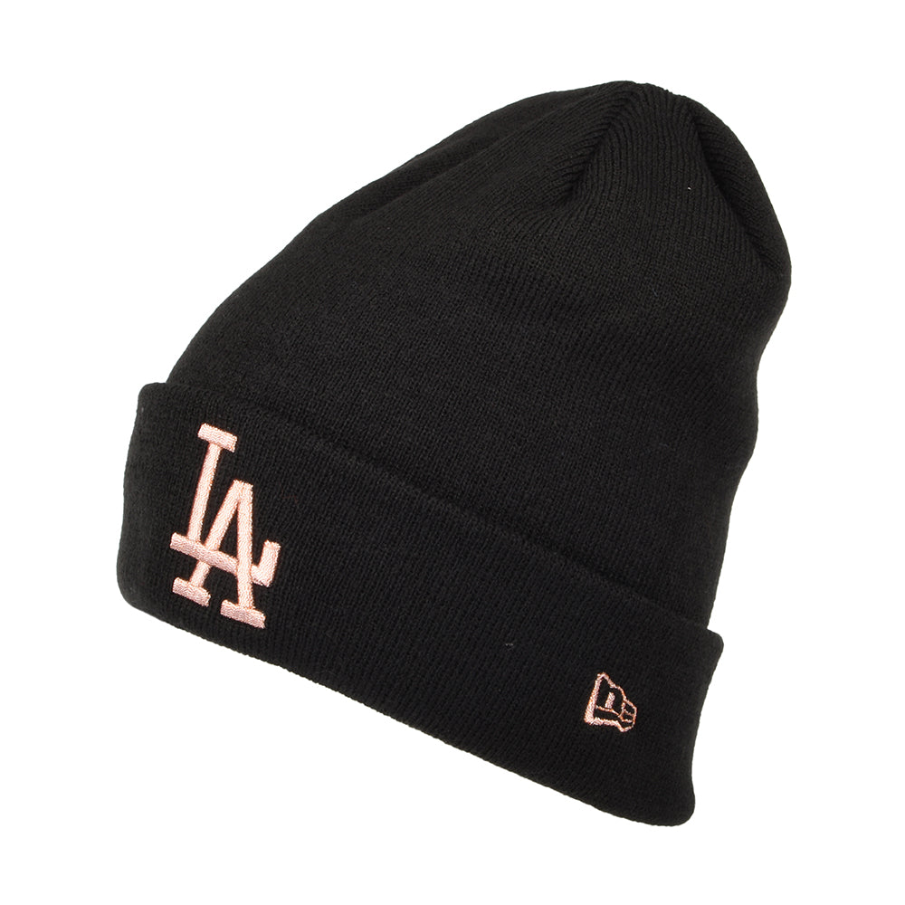 New Era Womens L.A. Dodgers Cuff Beanie Hat - MLB Metallic Logo - Black-Rose Gold
