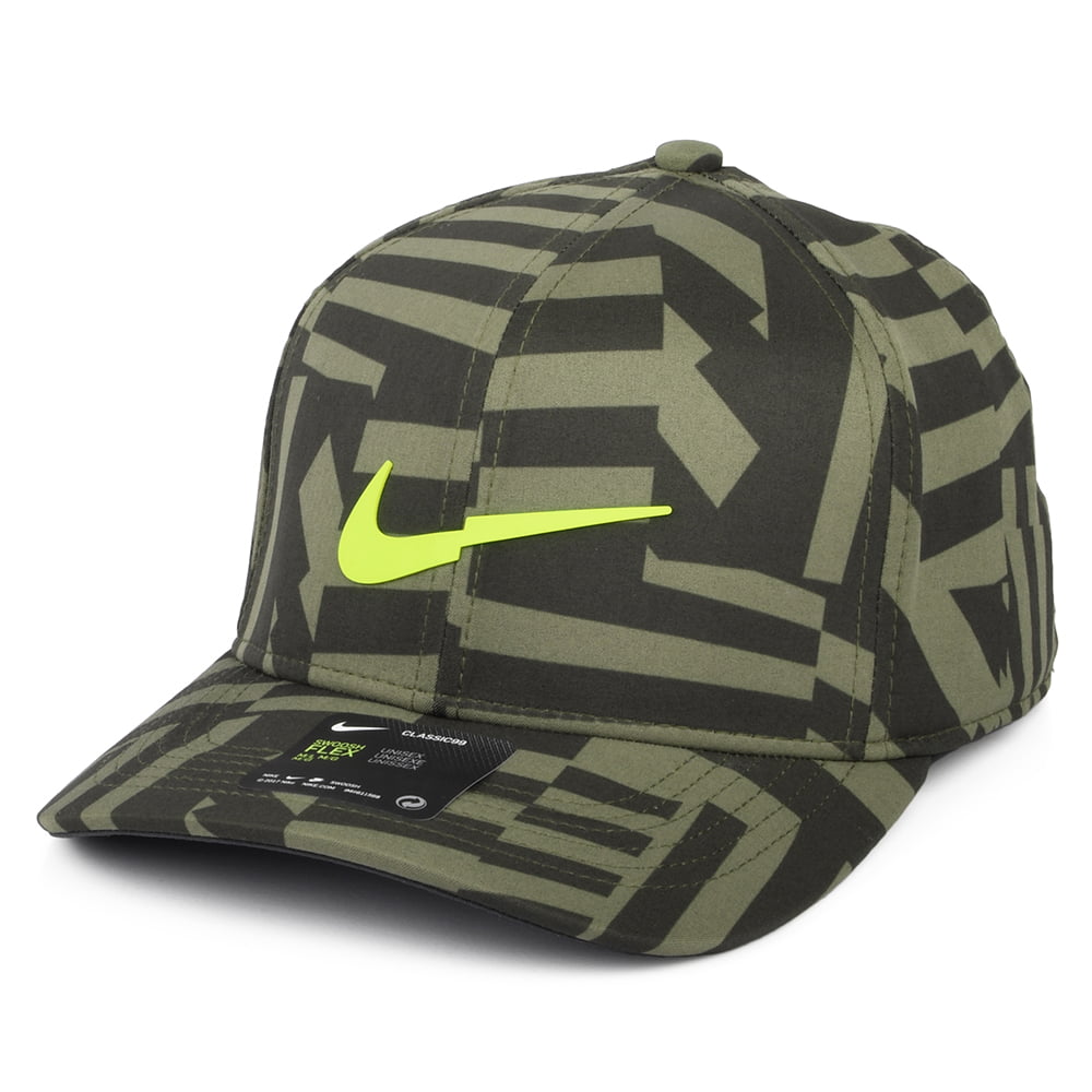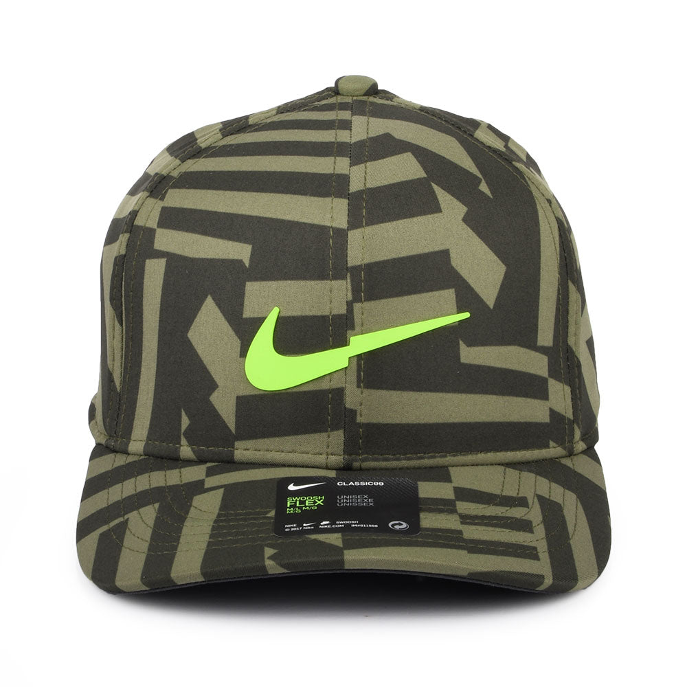 This is the Nike Golf Classic 99 US Open Baseball Cap in olive-yellow. The hat features a Nike logo on the front and the back of the cap. There is a flex sweatband to ensure a great fit and an AeroBill for breathability and comfort.
