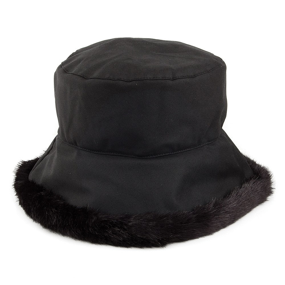 The Beth waxed cotton faux fur hat in black from Olney is a fantastic, water repellent hat with a fleece lining to keep you warm. The hat also features an incredibly soft faux fur under the brim and around the edge. This must have item for winter is the perfect addition to any wardrobe.