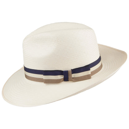 Olney Hats Snap Brim Panama Hat with Striped Band - Bleach