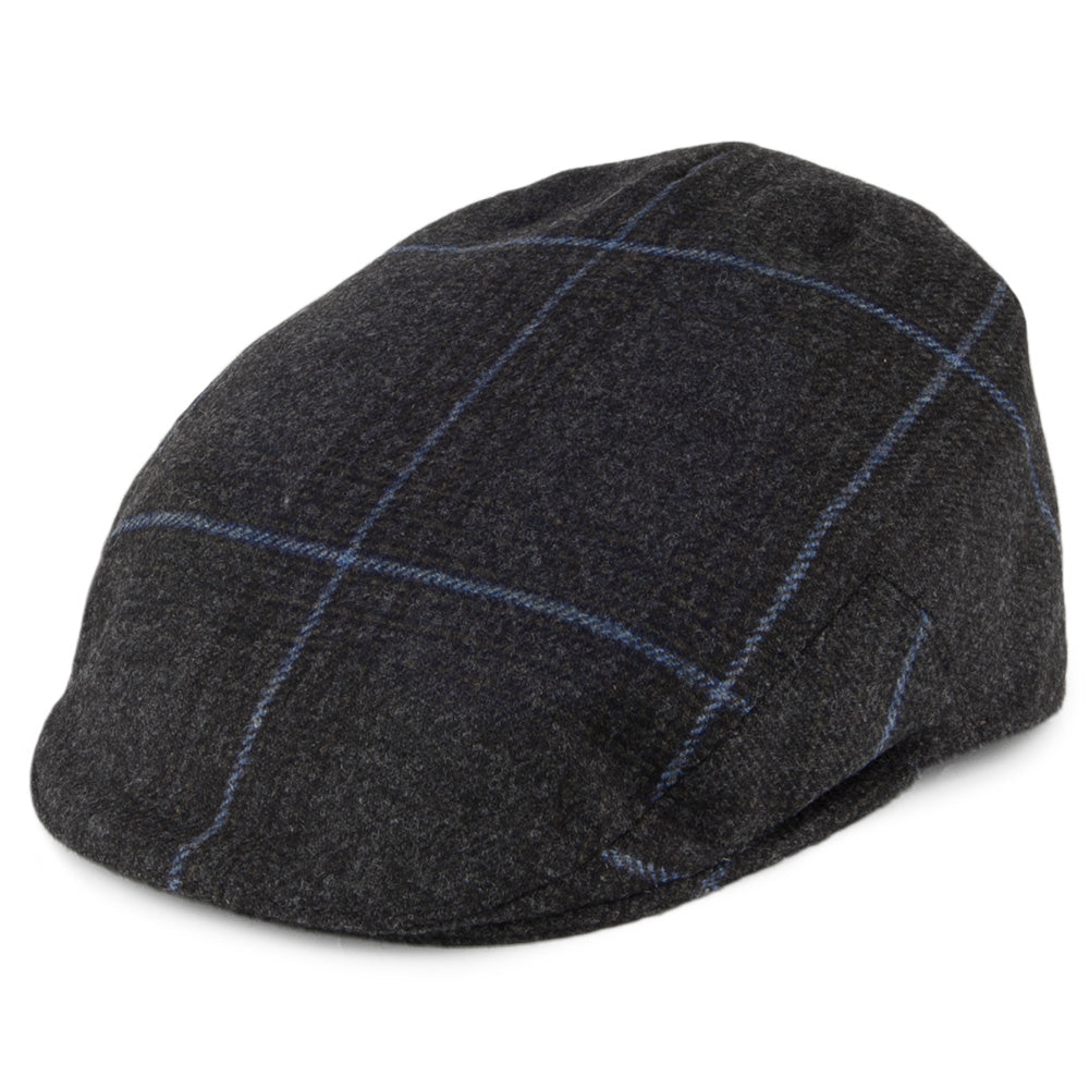 Olney Kinloch Tweed Saxony Flat Cap - Charcoal-Blue