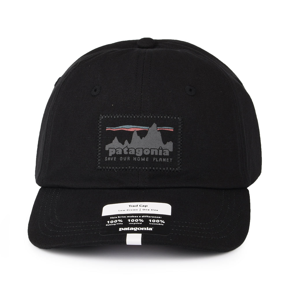 The 73 Skyline Trad Organic Cotton Cap in black is an amazing new baseball cap style from Patagonia. The cap is made of 100% organic cotton and features a Patagonia patch sewn on the unstructured front. The brim of the cap is made of Bureo's 100% recycled fish nets. The adjustable back make this ready to wear from day one.