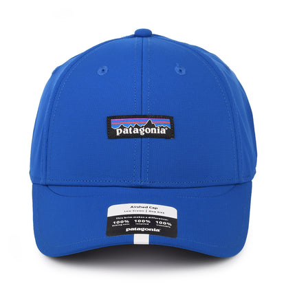 The Patagonia Airshed Low Crown Baseball Cap in blue is made of a lightweight, exceptionally breathable, fast-drying recycled material and features a Patagonia patch sewn to the structured front of the cap. On the inside is a HeiQ Mint sweatband for odour control. There is an adjustable hook-and-loop strap at the back of the cap for a perfect fit.