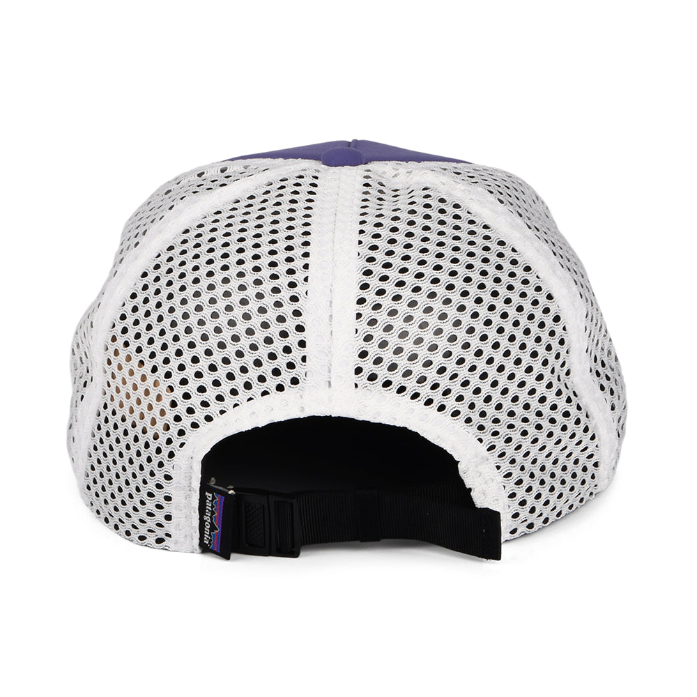 The Patagonia Duckbill Shorty Trucker Cap in purple is a Fair Trade Certified™ trucker cap partially made with recycled materials. It provides the coverage of a baseball cap with a mesh back that helps dissipate heat. This cap features a Patagonia logo on the front towards the side and a Patagonia flip tag at the back. On the inside is a HeiQ Pure sweatband for odour control and a strap at the back adjusts to fit most sizes. The packable foam brim folds into a pocket for easy packing, then rebounds to its original shape.