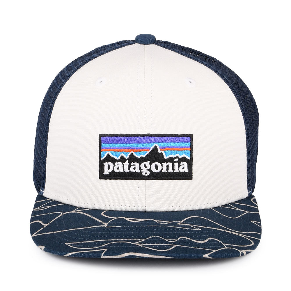 Patagonia Hats Kids P-6 Logo Organic Cotton Trucker Cap - White-Blue