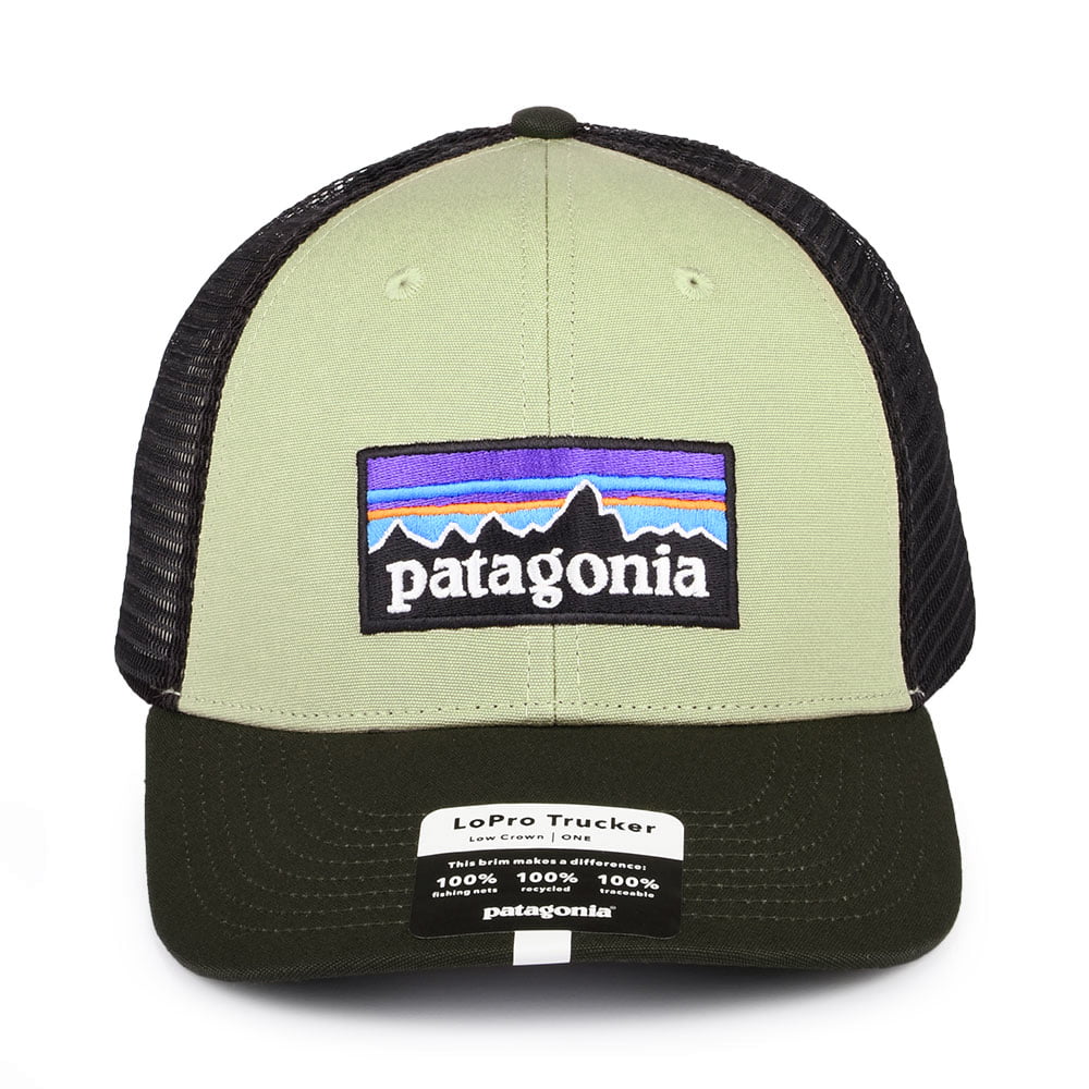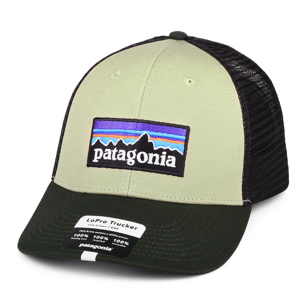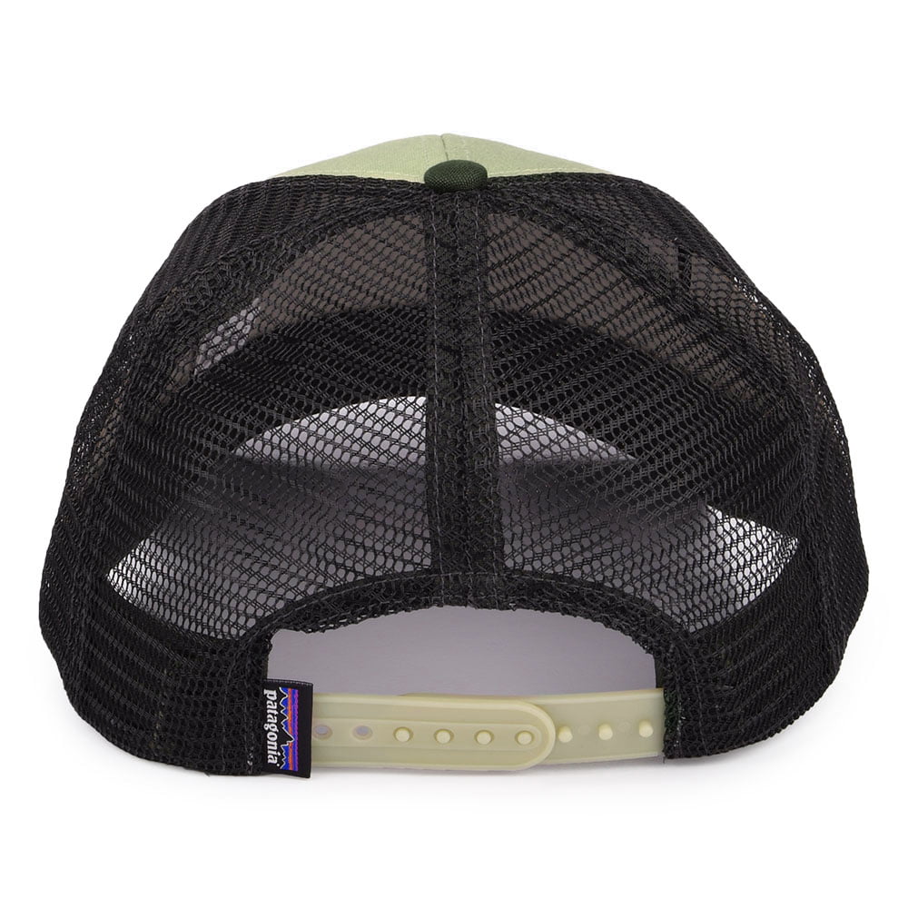The P-6 Logo Organic Cotton LoPro Trucker Cap in khaki features the Patagonia logo embroidered on the structured front panels. The mesh back makes the hat comfortable to wear during the hot summer months. The brim of the cap is made of Bureo's 100% recycled fish nets. A Patagonia fliptag can be found next to the adjustable snap at the back.