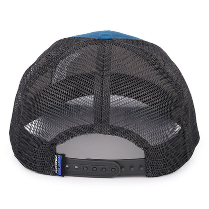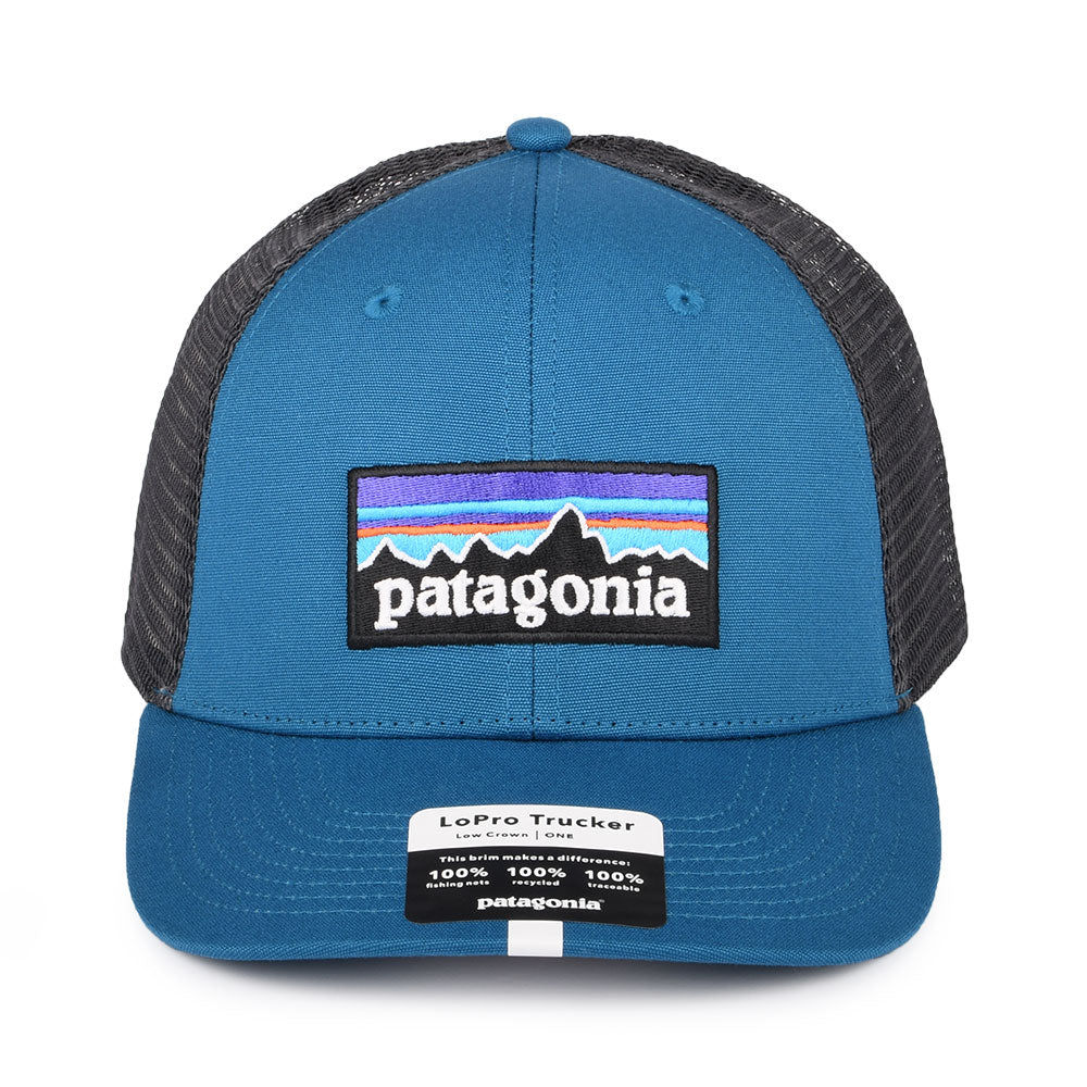 The P-6 Logo Organic Cotton LoPro Trucker Cap in teal features the Patagonia logo embroidered on the structured front panels. The mesh back makes the hat comfortable to wear during the hot summer months. The brim of the cap is made of Bureo's 100% recycled fish nets. A Patagonia fliptag can be found next to the adjustable snap at the back.