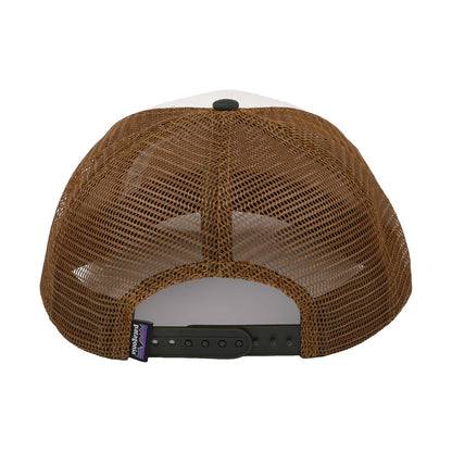 The P-6 Logo Organic Cotton Trucker Cap in forest features the Patagonia logo embroidered on the structured front panels. The mesh back makes the hat comfortable to wear during the hot summer months. The brim of the cap is made of Bureo's 100% recycled fish nets. A Patagonia flip tag can be found next to the adjustable snap at the back.
