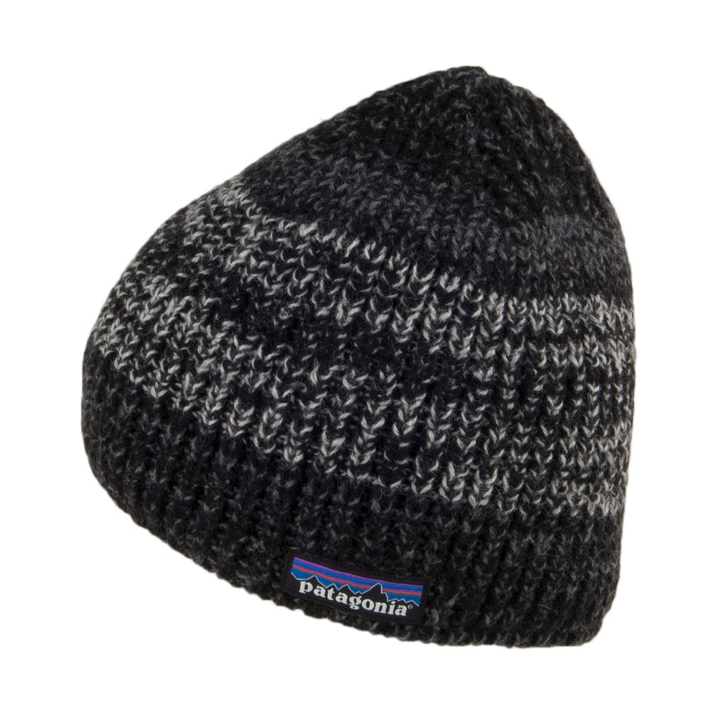 This is the Patagonia Speedway beanie hat in dark grey. This warm beanie is made of a multicoloured wool blend yarn and has a fleece lining for added warmth. There is a Patagonia patch sewn towards the bottom of the hat.