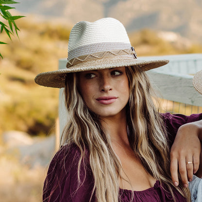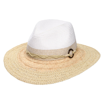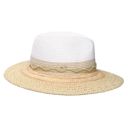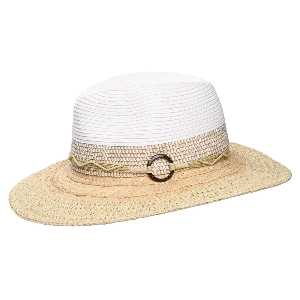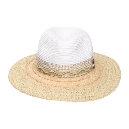 Scala Hats Alcantara Packable Toyo Straw Safari Fedora Hat - White-Natural