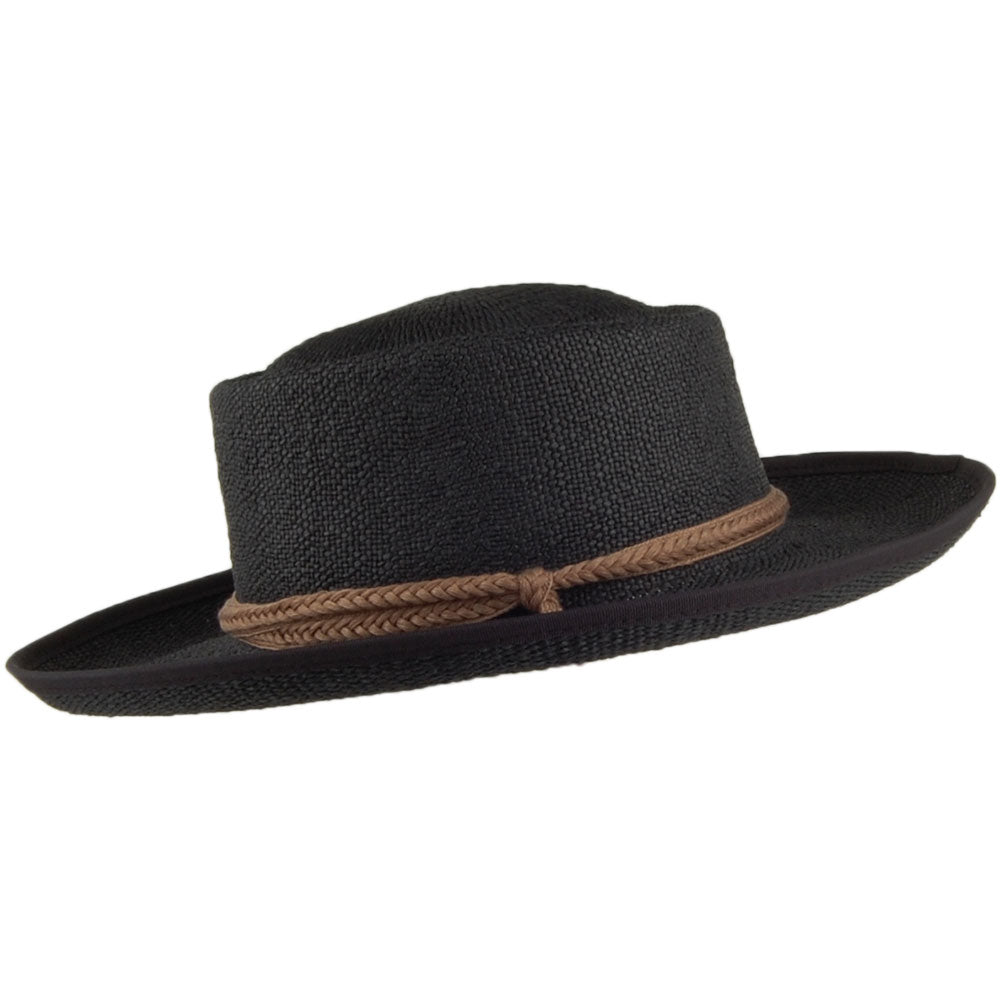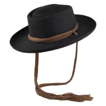Scala Hats Jesolo Toyo Gaucho Sun Hat With Braided Cotton Chin Strap - Black