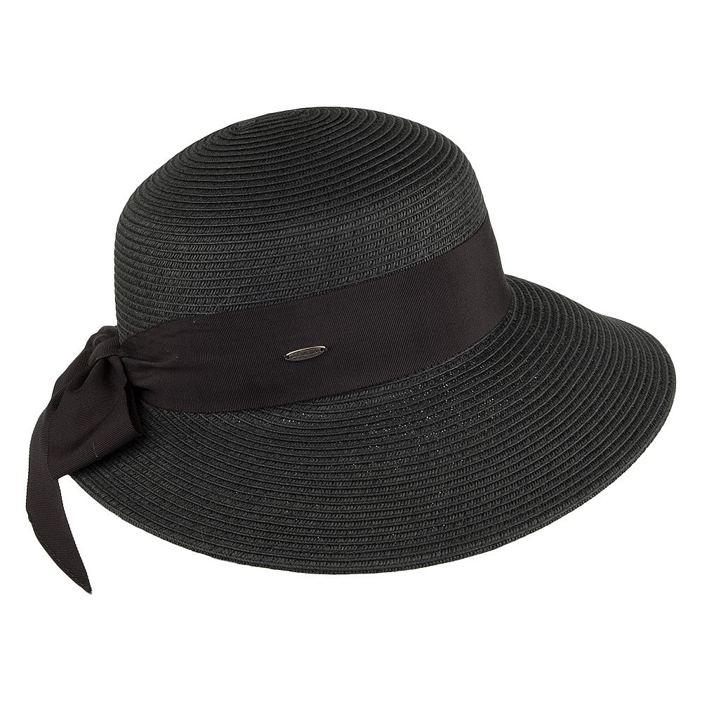 Scala Hats Straw Sun Hat With Grosgrain Bow - Black