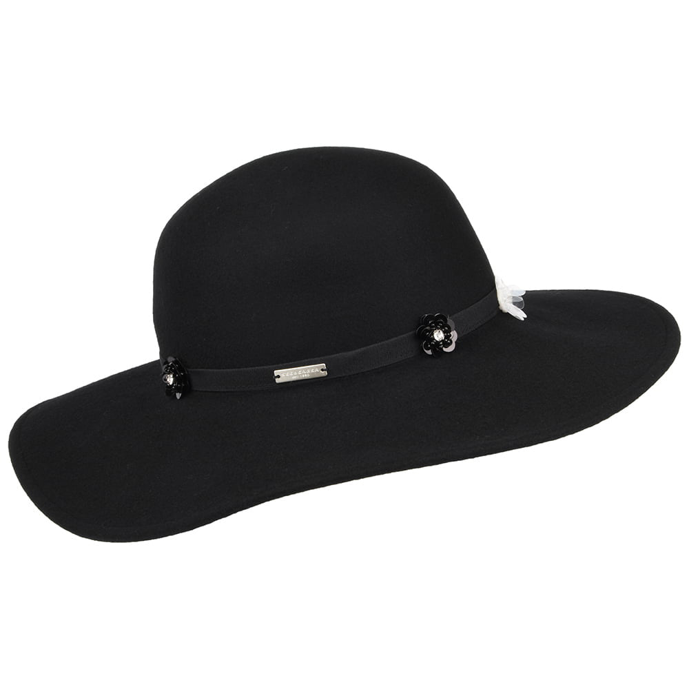 Seeberger Hats Flower Wool Felt Floppy Hat - Black