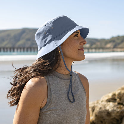 Soak up the sun and enjoy the shade with the Sunward Bucket in light grey from Sunday Afternoons. Made from bluesign®-certified fabric with a PFAS-free durable water repellent finish, this lightweight hat is crushable - pack it, stuff it, or stash it away, it will hold its shape. UPF 50+ sun rated with stretch-comfort adjustable sizing, reflective details, and moisture wicking sweatband, this hat will be your perfect companion this summer.