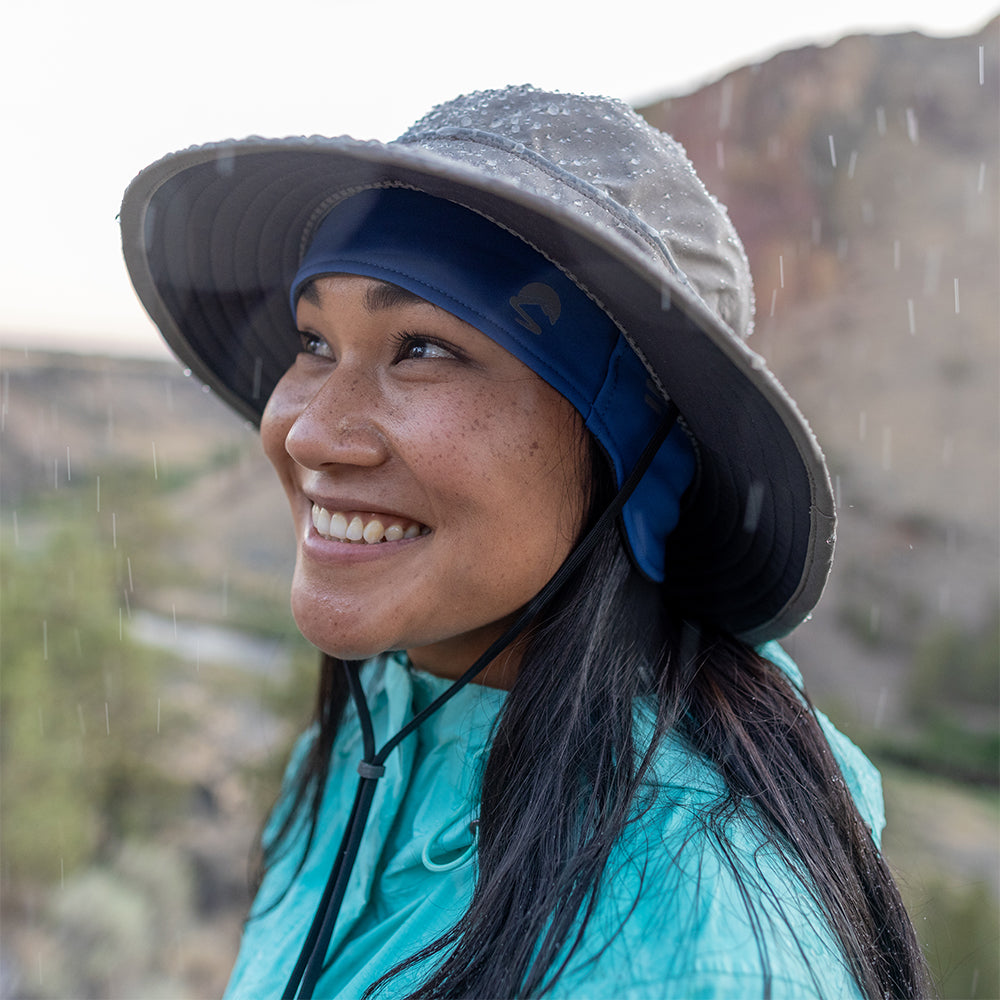 Here is the Sunday Afternoons Hats Ultra Storm Bucket Hat in taupe. This bucket hat is 100% waterproof and comes with an adjustable chinstrap to keep the hat on in any weather! The bucket features a mesh lining and sweatband for breathability. There is a Sunday Afternoons label on the side and reflective details. The sweatband also has an adjustable cord inside for a perfect fit.