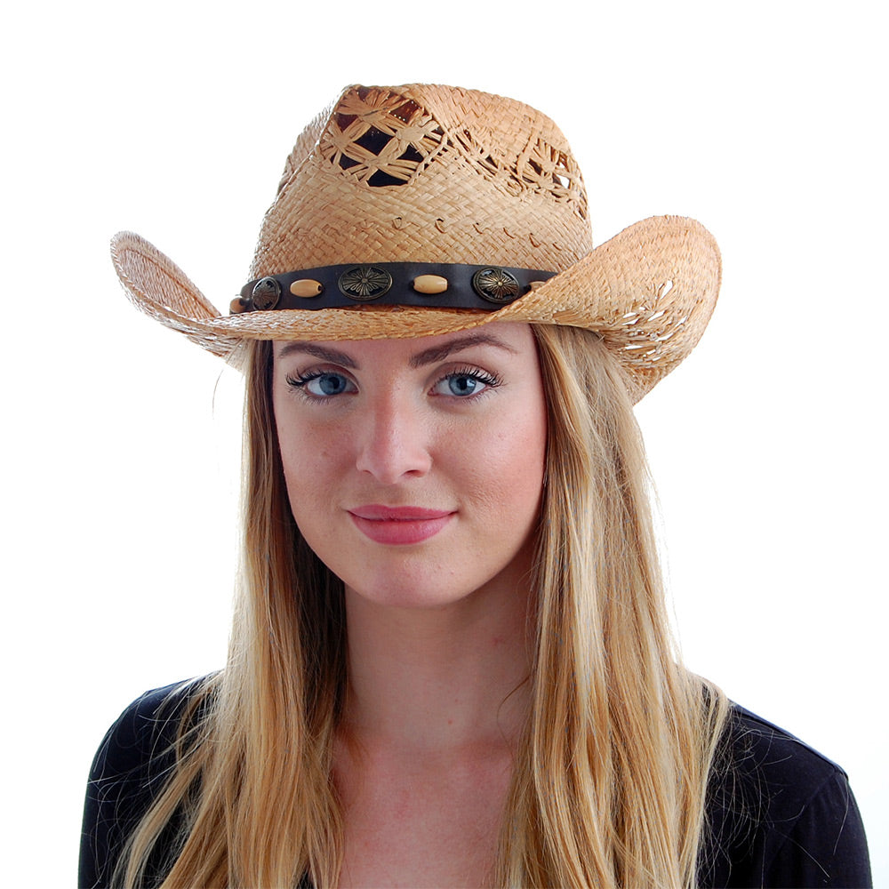 sur la tête Annie Oakley Raffia Cowboy Hat Wholesale Pack
