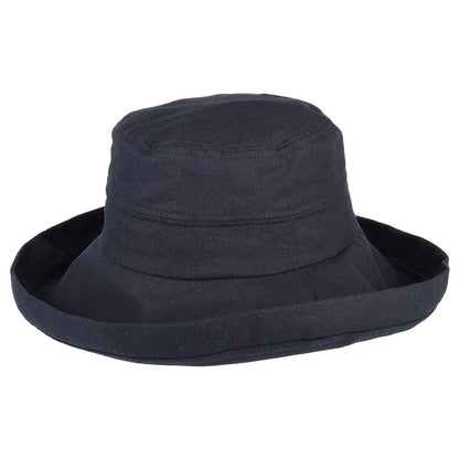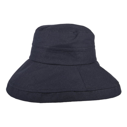 sur la tête Lily Linen-Cotton Packable Sun Hat - Navy Blue