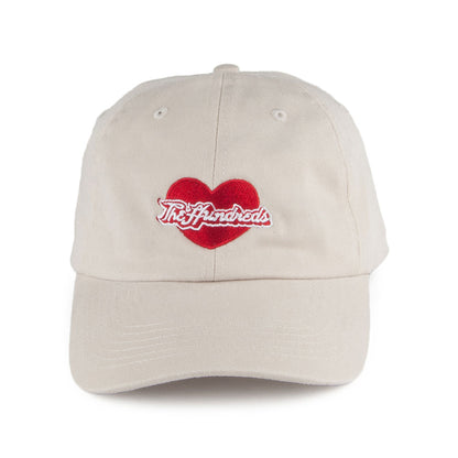 The Hundreds Romance Baseball Cap in stone will give your head that warm fuzzy feeling. This classic ball cap has an unstructured crown and pre-curved brim encompassing all the elements of the stylish and comfortable dad-cap. The Hundreds logo with heart design is embroidered on the front. An adjustable strapback provides easy sizing.