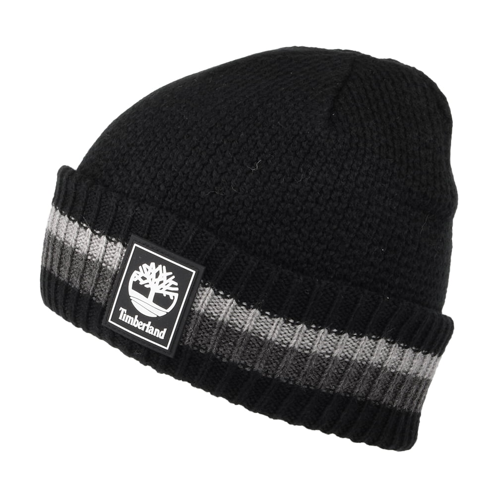 Timberland Hats Striped Cuffed Beanie Hat - Black-Grey