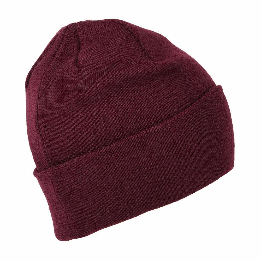 The Timberland Tonal 3D Embroidery Recycled Beanie Hat in port features the Timberland logo embroidered on the front of the cuff. The hat is made of a ReBOTL™ fabric which contains at least 40% recycled plastic and is dual layered for added warmth.